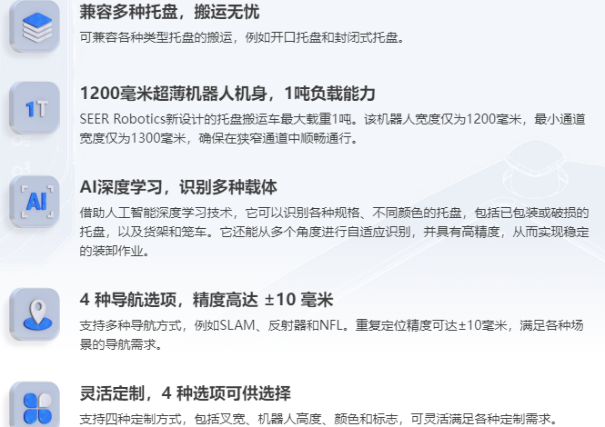 SEER机器人控制器,SEER托盘搬运车,SEER充电站